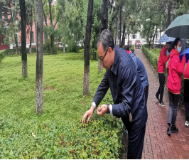 由于秋季雨水较多,校园绿化的矮树墙上寄生了大量杂草,为了提高除草质量和效率,首先,饮食管理科党支部书记赵爽向大家详细介绍了除草范围及具体方法。随后,老师们带领同学们开始了义务劳动,劳动中,虽然是下着蒙蒙的细雨,但是大家毫不抱怨,不怕脏、不怕苦、不怕累,齐心协作、个个干劲足,有条不紊相互配合,呈现出一片井然有序的劳动景象。经过一个小时的奋战,圆满完成了划定区域的杂草清理工作。最后,研究生党支部尹泽西老师对员工党员和积极分子同学参与本次活动给予高度肯定,希望广大同学做爱校护校荣校的积极践行者。