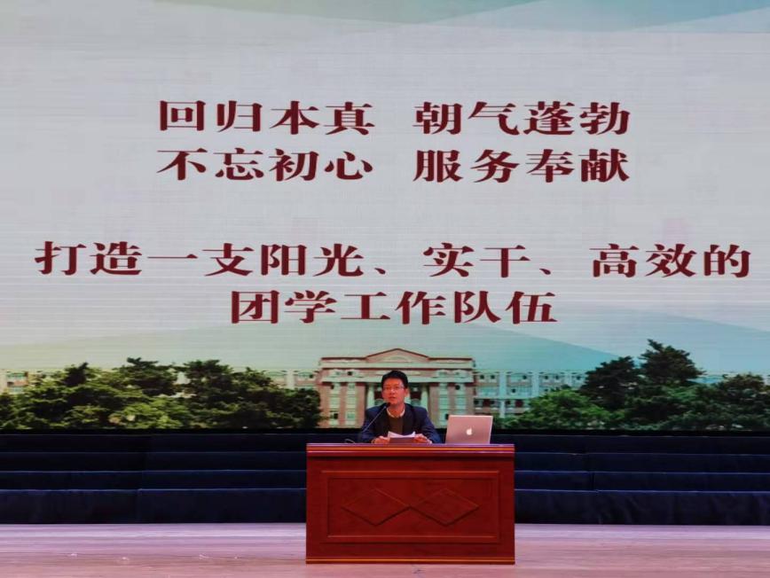 单洪朱老师结合此次学习,对全体员工干部提出要求:第一,团学干部要正确处理好学习和工作的关系,要紧抓学习不能落后;其次,工作中进一步加强作风建设,切实为广大同学做好服务,团干部要深入基层,倾听同学们的心声,加强与团支部之间的联系,带头努力创先争优。每个人都应具备工作“情怀”,通过自己的特长将工作落到实处,热爱工作,热爱组织。希望同学们定好目标,统一思想,总结方法,为本学期后续各项工作的开展做好准备。