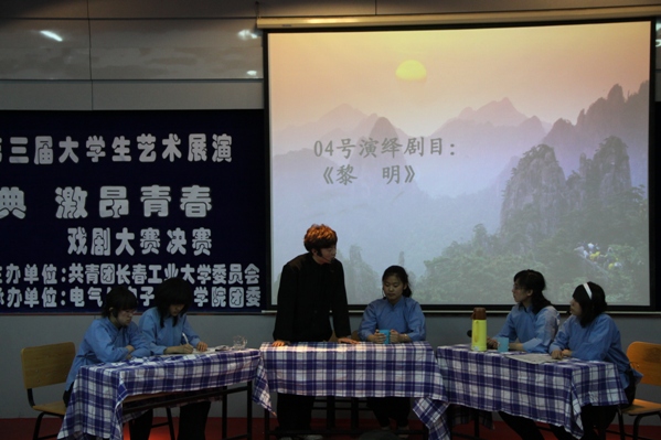 通过初赛选拔本次决赛共有8个公司的11个节目参赛。其中有《黎明》、《雷雨》等经典剧目,也有《大学进行曲》等原创舞台剧,情节多样,丰富多彩。机电工程公司带来的《穿越》,借住穿越实现自己的梦——寻一位女友,但是穿越出来的女友总是能让他大跌眼镜,让观众捧腹,用欢笑引爆全场。而后的《大爱无边》和《我的疯娘》都是取自真实故事,剧情朴实但引人深思。tyc122ccVIP的话剧《梦想照进现实》又为我们指明了,梦其实就在我们手里,只看怎样把握。比赛的间歇由校十佳歌手一等奖获得者高文典、衣鑫分别演唱了歌曲《这就是爱》和《love song》。最后机电工程公司的《穿越》荣获了本次比赛的一等奖,并由嘉宾老师为所有获奖者颁奖。至此本次比赛圆满结束。