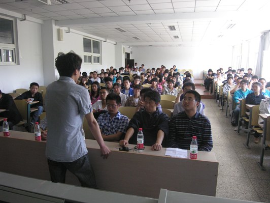 首先,赵老师介绍了参加交流会的同学:考取中国科公司马斌斌,东南大学王斌,北京理工大学裘俞杰,东北大学曹俊伟、刘淑清、付文英,哈尔滨工业大学侯庆慧、赵颖伟,哈尔滨工程大学王波、孟庆丹,吉林大学王德福、金多、李阳。随后,大四的同学们分别从考研程序、公司选择、复习方式、如何克服心理压力、重视英语学习、搜集和关注考研信息、确定考研方向和导师等不同方面进行了详细介绍,现场不是爆发出热烈的掌声。同学们的兴致特别的高,积极的提问,有的同学问道如何的备考,有的同学问道具体哪个考研班适合自己,有的同学问道如何能拿到外校的考研真题,各种问题层出不穷,以上13名同学也根据自己的实际和所考取的专业为同学详细的一一解答,得到在场同学们的肯定,并投去赞许的目光。