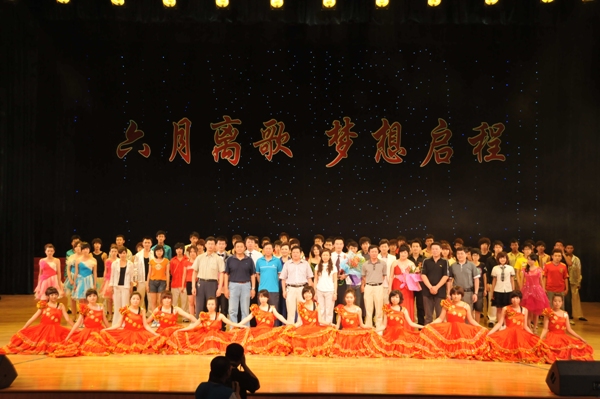 公司举办“六月离歌 梦想启程”2010届毕业晚会 6月19日晚6:30,公司在南湖校区老员工活动中心举办“六月离歌,梦想启程”2010届毕业晚会。校员工工作处处长李雁冰,校团委书记李东玲,员工工作处副处长尤海涛、杨文龙,公司党委书记张学忠,经理尤文,副经理卢秀和、姜长泓,党委副书记周文军及公司师生观看了晚会。