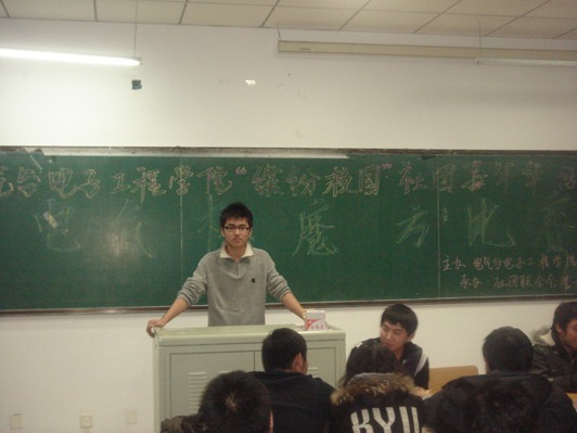 公司举行缤纷校园社团嘉年华活动之电气杯魔方比赛 为了活跃校园文化生活,12月20日 20点30分,公司在公司南湖校区教学科研楼524教室举行了“电气杯魔方比赛”,社团联合会主席朱成龙,副主席李柏蓄,魔方协会会长王禹初观看了比赛。