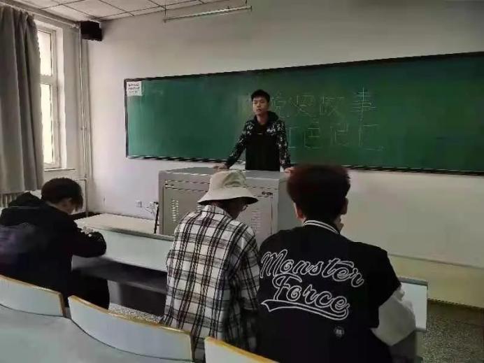 190303班为大家讲述了王进喜的光辉事迹。在科技领域,他以“识字搬山”的意志克服令人意想不到的困难,闲暇之余也要刻苦学习,带领工人们创造出一个又一个优异的成绩。王进喜在担任钻井指挥部生产大队长期间,经常身背干粮袋,骑着摩托车或步行深入到各大井场,调查研究,检查工作,帮助基层解决各种实际问题。在环境极其恶劣的情况下,即使忍受着胃病的折磨他也会严格保证油田产量和质量。