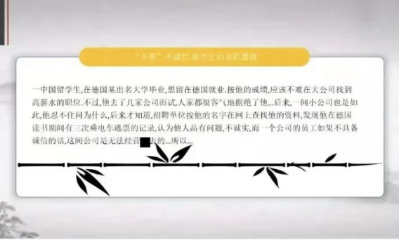 会议强调诚信考试的重要性,并指出诚信考试的目的以及要求。同时结合小故事以及案例提高同学们的诚信意识,让同学们明白,无论是任何形式的考试,诚信考试都不是束缚,而是作为新时代新青年应该承担的责任。