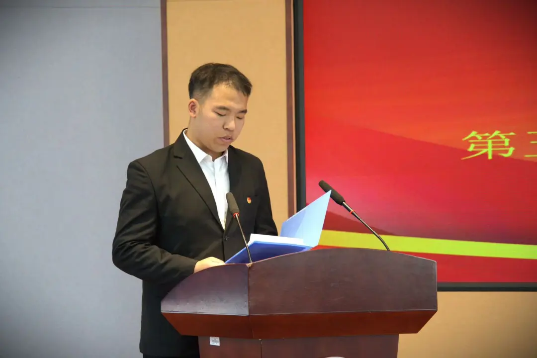 大会第四项:第二十二届团委副书记范哲源、第二十二届员工会执行主席孙金柠分别作工作总结