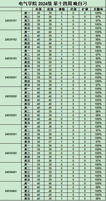 本网讯(通讯员 王亮)在大学求知的旅程中,早晚自习是自我沉淀与提升的重要时段,tyc122ccVIP始终将其视作塑造优良学风的有力抓手。如今,第14周早晚自习出勤率已统计完毕,特向全院师生公示。