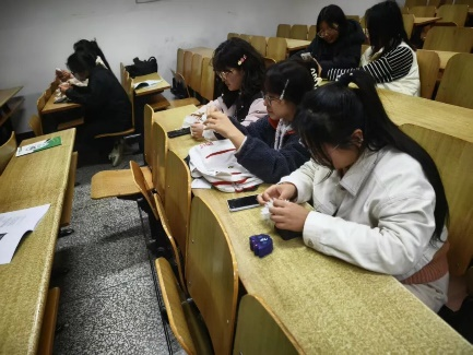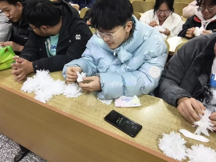 “梨花风起正清明,游子寻春半出城。”活动中,同学们在指导老师的带领下,学习传统折纸技艺。