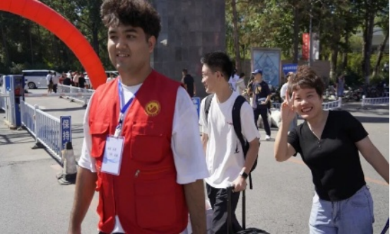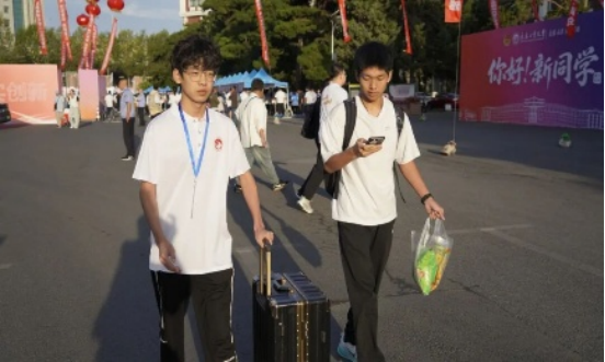 在新生报到处,一群身着统一志愿服装的学长志愿者们格外忙碌,他们主动上前接过新生手中的行李箱、包裹等行李,一路护送新生至宿舍楼下,用热情与行动为初入校园的新生们送上第一份温暖。