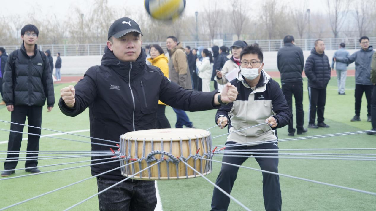绳牵鼓面,力聚一心;球落鼓鸣,节合众人。