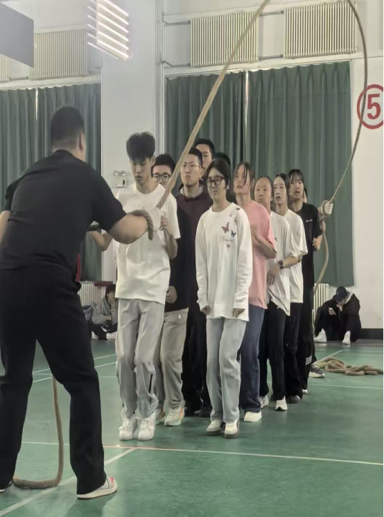 跳绳不仅是个人的自我挑战,更是团队之间的高度合作。每个人都需要把握好摇绳节奏,同时起跳,才能顺利过绳。‘人心齐,泰山移’这句古语就是最好的诠释。