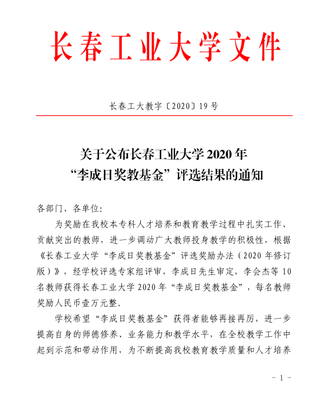 喜报:公司王世荣老师获得tyc122ccVIP 2020 年“李成日奖教基金”