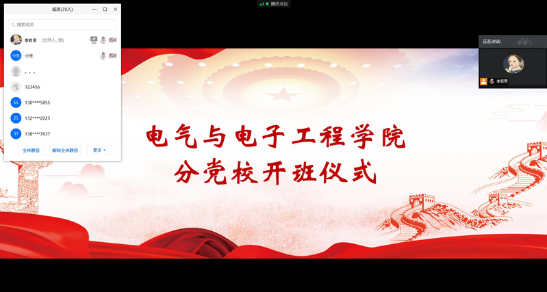 本网讯(通讯员:赵一霖)在公司党委的统一部署下,为加强对入党积极分子的培训,为党组织培训新力量,按照疫情防控要求,tyc122ccVIP于2020年4月11日上午,通过腾讯会议软件在线上召开2020年第十二期分党校开班仪式暨第一次专题党课培训。电气与电子工程公司党委书记杨景伟,党委副书记矫东海,18级辅导员李若男,以及近80位培训公司参加开班仪式,仪式由员工第一党支部书记李若男主持。