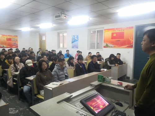 本网讯(通讯员 田鑫)为加强青年党员党性观念,培养爱党爱国情怀。10月14日中午,公司党委副书记矫东海在南湖校区电气楼1401教室为全体研究生、本科生党员上了一堂生动的党课。