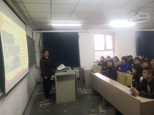 本网讯(通讯员 田鑫)为培养青年党员爱党爱国情怀,增强其使命感和责任感,贯彻学习“不忘初心,牢记使命”主题教育。11月13日中午,tyc122ccVIP专职组织员朱博在南湖校区电气楼1401教室为全体员工党员和第45期发展对象上了一堂生动的党课。