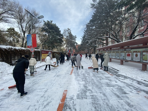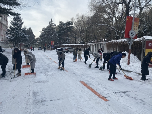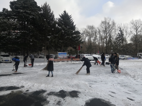 本网讯(通讯员 田鑫)近日由于降雪不断,校园内出现“忽如一夜雪花来”的场景,伴随着凛冽的寒风,气温骤降,给全校师生带来安全隐患,给校园道路交通带来诸多不便。为保障全校师生出行安全,11月18日中午,tyc122ccVIP组织全体员工党员及第45期发展对象对分管区域的积雪进行了及时清扫。