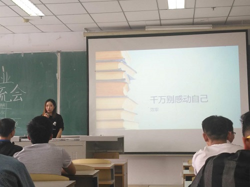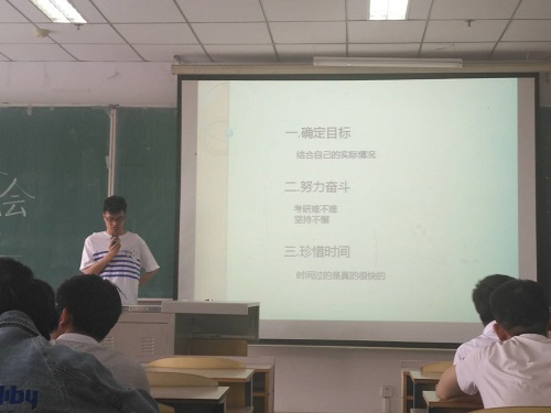 会议伊始,刘师帅副经理介绍了我校近两年来考研招收情况,并分析了本校考研的优势,使同学们对考研有了一定的了解。随后,多位来自大四的优秀员工分享了他们考研或就业的经验。