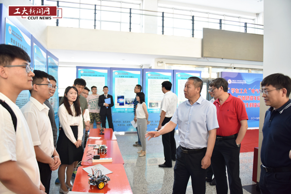 启动仪式结束后,全体与会领导、师生参观科技竞赛作品展。《基于视觉引导的工业机器人安全作业》《四轮驱动电动汽车综合协调底盘控制系统》等作品进行了现场展览,这些成果都是公司师生根据生产实际需求,自行设计制作的,同学们认真地向参观师生详细讲解竞赛作品的设计思路、性能指标以及获奖情况,充分展示了公司教学科研工作取得的丰硕成果。