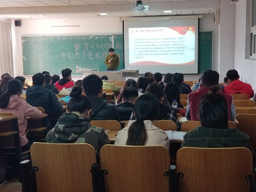 (通讯员:郑昊 杨丰瑞)为传达中共中央关于印发修订《中国共产党纪律处分条例》(以下简称《条例》)的通知,引导员工党员牢固树立全面从严治党责任意识,2018年10月24日下午2时整,tyc122ccVIP于南湖校区科研楼2416教室举办“学习2018新版《中国共产党纪律处分条例》”主题党日活动。公司党委副书记矫东海、专职组织员李昆出席本次活动,公司全体研究生党员、本科生党员参加。本次活动由公司党委副书记矫东海主讲。