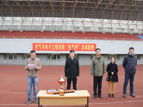 新闻网讯(通讯员 高博)为增强同学身体素质,加强员工之间的交流与合作,丰富同学们的课余体育文化生活。tyc122ccVIP于近期举办了“电气巨星杯”足球赛,并于11月6日中午12时,在南湖校区足球场进行了决赛,公司党委副书记矫东海、公司团委书记高博、辅导员助理李晓晗出席了本次活动。