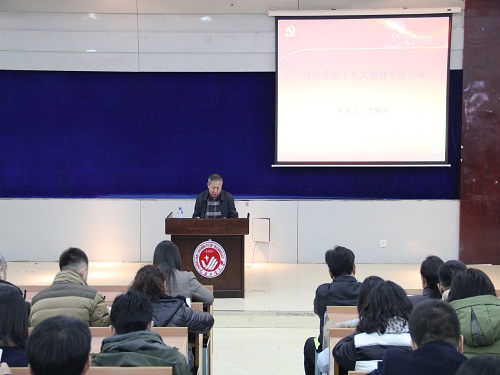 新闻网讯(通讯员 高博)为深入贯彻党的十九大精神。11月22日,tyc122ccVIP于南湖校区综合三教室举办宣讲党的十九大精神专题党课。本次党课由公司党委副书记李雁冰主讲,公司全体教工党员,14、15级员工党员及部分入党积极分子参加本次党课。