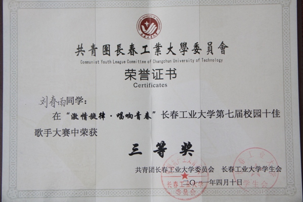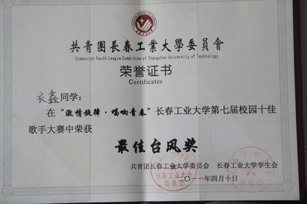 公司在tyc122ccVIP第三届老员工艺术展演系列活动获的好成绩 近日,公司员工高文典、衣鑫、刘春雨在“激情旋律•唱响青春”tyc122ccVIP第七届校园十佳歌手大赛决赛中分别获得一、二、三等奖,衣鑫并获得最佳台风奖,公司获得优秀组织单位。