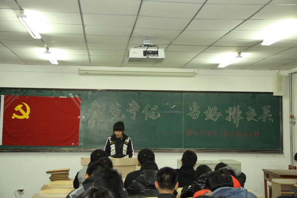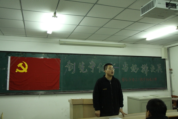 赵老师首先就新华网上的一篇题为《创先争优精神是人类社会进步的不竭动力》的社论论证了创先争优的社会价值,并向同学们提出员工党员如何践行创先争优。同学们针对主题展开激烈讨论,分别在学习、生活和工作等方面发表了自己的理解和感想,结合自己在理论学习、群众服务、班级工作和寝室学风建设上与同学们交换了经验,并表达了自己在今后创先争优活动中具体规划和决心,承诺努力做到:带头学习提高、带头争创佳绩、带头服务群众、带头遵纪守法、带头弘扬正气。