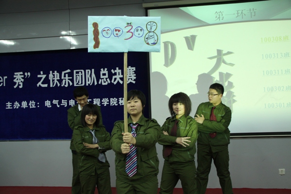 此次活动共分为三个环节,第一环节是“DV大比拼”,由各班展示班级风采,拼的是VCR的搞笑,比的是方队人气。第二环节“才艺你我他”,舞蹈、话剧、歌剧各班选手各显神通。第三环节是“模仿我最棒”,模仿或为名家名段配音,虽然与标准的比起来差远了,但为大家带来了快乐。最终,100311班摘得桂冠,100308﹑100301班分列2﹑3名。最后由嘉宾分别为一﹑二﹑三等奖颁奖。至此本次“Super秀”之快乐团队总决赛圆满结束。