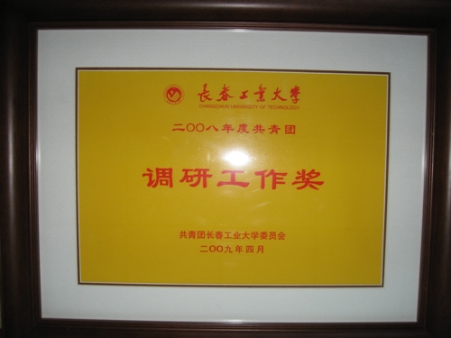 2009年4月27日18时30分公司在吉林大学长邮礼堂召开了2008年度联系我们总结表彰大会,公司被评为第三届挑战杯tyc122ccVIP老员工课外学术科技作品竞赛突出贡献奖,员工工作被评为2008年度公司员工工作先进集体、公司团委被评为校先进基层团委、共青团调研工作奖,同时公司荣获第六届“冬之梦”寝室设计大赛优秀组织单位称号。公司总支副书记周文军、员工辅导员赵爽被评为优秀政工干部。
