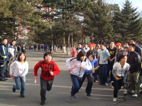 12月9日公司在篮球场举行了纪念一二·九运动七十三周年“激情与讴歌”趣味接力赛。参加本次活动的领导有公司党总支副书记周文军老师及公司员工工作办公室全体老师。 本次活动在大一、大二、大三员工中展开,分别以班级、组合班级、专业为单位,每3女4男7名队员为一队,共23支队伍,分四组进行3*400,4*800米接力赛。赛道上设有一二·九运动历史知识问答和跳绳两关,不答题或答错一题在总成绩中扣除3秒。比赛中队员们奋力争先,队员们丰富的知识和敏捷的思维在答题环节中表现的淋漓尽致。比赛结束后综合评定结果:080312班、080309班、080304班获得前三名,活动在胜利的欢呼声中圆满结束。 这次活动使员工们在娱乐的同时加深了对一二·九运动的认识,增强了同学们的爱国热情和历史使命感,同时丰富了同学们的课余生活,促进了班级团结。