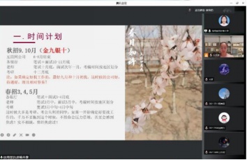 会议伊始,朱宏殷老师简明介绍了本次会议的主旨和参会人员,在大家的热切期盼中,刘经理详细介绍了近三年本公司研究生招生、报考和录取等情况,8名受邀优秀毕业生依次分享了自己的实习、就业、考研和调剂等宝贵经验。