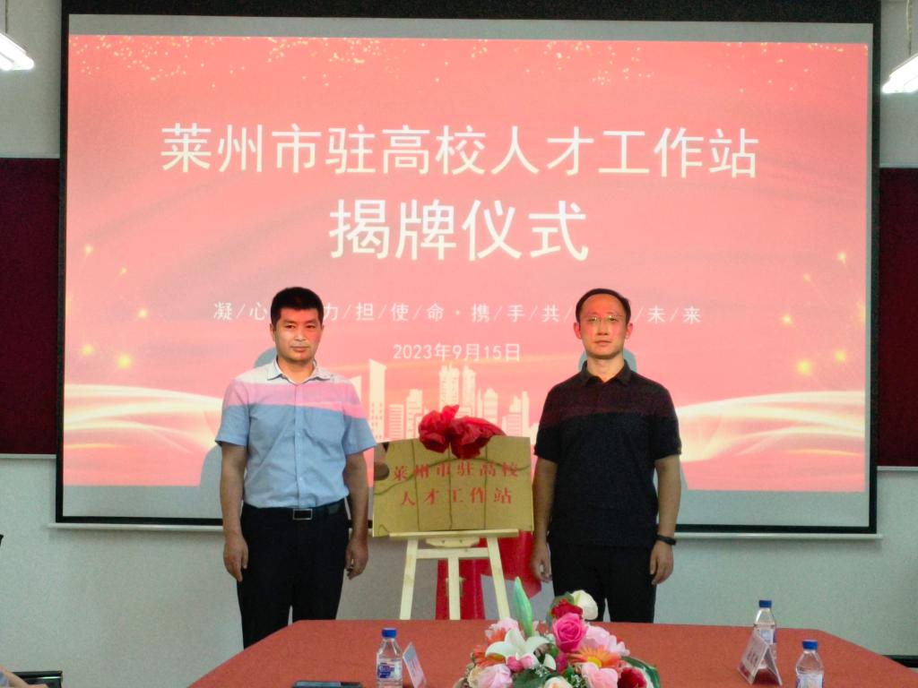 本网讯 (通讯员 高宇航)9月15日上午,莱州市文峰路街道办事处主任原磊、莱州市文峰路街道办事处经发办主任沈伟、莱州市精密锻造有限公司总经理赵崇佳、莱州市华泰绝缘材料有限公司总经理尹忠华、莱州市泓嘉机械有限公司总经理赵秉钺、海创汇莱州产业加速平台及海创汇长春创新中心相关人员等莅临我参加揭牌仪式。公司党委书记杨景伟、副经理董博、副经理刘帅师、副经理王申全、副经理杨宏韬、电气工程及其自动化系主任邵向鑫热情接待了来访一行。双方在电气与电子工程会议室举行座谈交流会,会议由董博主持。杨景伟与原磊为莱州市驻高校人才工作站揭牌。