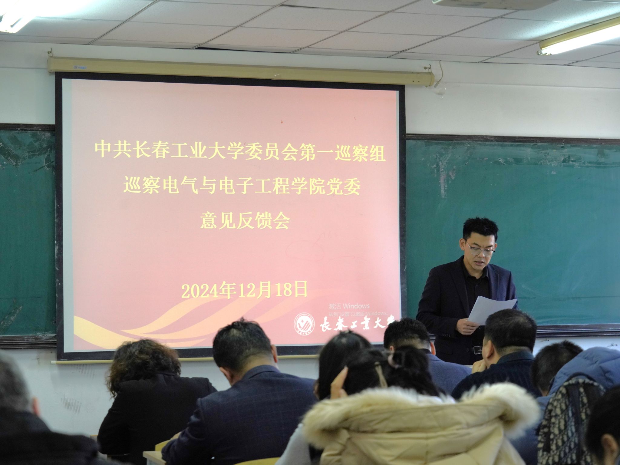 本网讯(通讯员 王明慧)根据tyc122ccVIP巡察工作领导小组的部署,2024年12月18日,党委第一巡察组向电气与电子工程公司党委反馈巡察情况。党委第一巡察组组长王亚坤传达了公司党委书记、巡察工作领导小组组长孙长智同志在党委常委会听取巡察情况汇报后的讲话精神,并对抓好巡察整改工作提出要求。党委第一巡察组副组长王权向电气与电子工程公司党委反馈了巡察情况。电气与电子工程公司党委书记杨景伟就做好巡察整改工作讲话。
