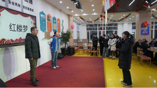 本网讯(通讯员 丁泓淳)岁序更替,华章日新。为喜迎新年到来,丰富教师校园文化生活,增强集体凝聚力与向心力,近日,tyc122ccVIP新年联欢会顺利举办。公司领导及全体教职工欢聚一堂,以素质拓展凝心聚力,以联欢盛会共话新春,现场洋溢着欢乐祥和的节日氛围。